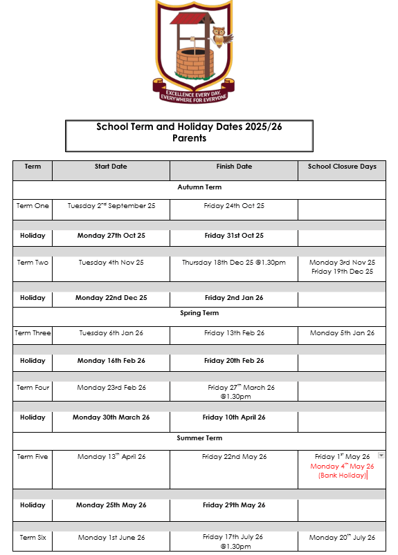 School Term and Holiday Dates 2025/2026 – Click here